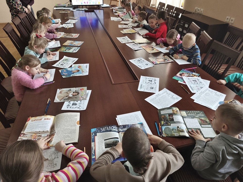 Детей заинтересовали красочные странички с играми, ребусами, загадками, кроссвордами, которые они с удовольствием разгадывали, находили путь в лабиринтах, слушали сказки и стихи известных белорусских писателей, например, рассказ Василия Ткачева “Шчарбаты нож”, стихи Нины Галиновской “Пісьмо на снезе”, “Сінічкі просяць” и др.