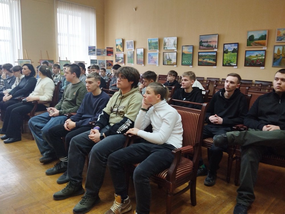 На сустрэчу былі запрошаны вучні Гомельскага дзяржаўнага дарожна-будаўнічага каледжу. Хлопцы пазнаёміліся з біяграфіяй і літаратурнай дзейнасцю пісьменніка. Асабліва звярнулі ўвагу на апавяданні “Сямнаццатай вясной” і “Настаўнік чарчэння”. Паразважалі, якім павінен быць сапраўдны настаўнік, падзяліліся, хто з’яўляецца такім настаўнікам для іх.
