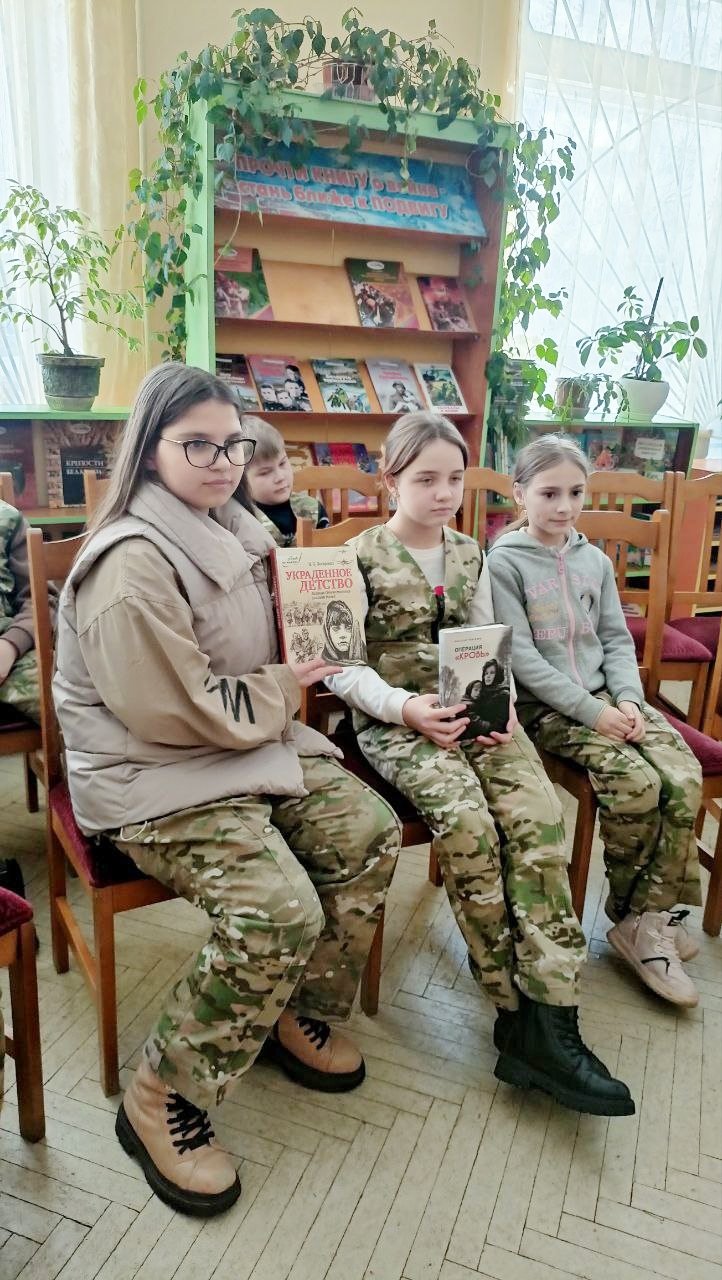 Познакомившись с сюжетом книги Николая Чергинца «Операция “Кровь”», пятиклассники узнали о детских лагерях, в которых содержались несовершеннолетние узники, являющиеся донорами крови для немецких солдат.