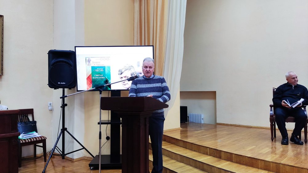 Спикеры, коллеги по творческому цеху, начали разбор творчества Владимира Гавриловича с повести “Святая Параскева”. Первым выступил Николай Николаевич Жданович, он представил свой отклик и зачитал мнение писателя, публициста, критика, лауреата Государственной премии Республики Беларусь и Национальной литературной премии Владимира Саламахи.