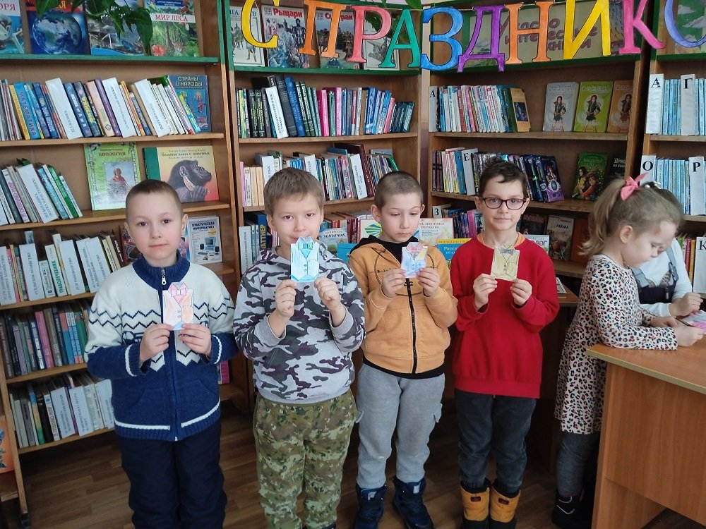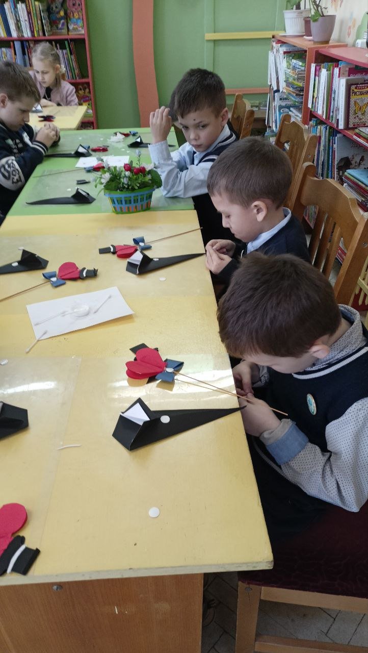 Ребята узнали об истории праздника и поделились традициями, связанными с этим днем, которые существуют в их семьях. Библиотекарь предложила ребятам сделать своими руками подарки для пап и дедушек, чтобы поздравить их с праздником. Вооружившись ножницами и клеем, школьники приступили к изготовлению подарков из цветной бумаги и картона. Ученики 1 «Б» ГУО «Средняя школа № 57 г. Гомеля» сделали открытку «Кораблик», а ученики 2 «Б» и 3 «А» классов ГУО «Средняя школа № 50 г. Гомеля» смастерили стильную упаковку для подарка «Денди», в которую смогут положить сладости или записочки с добрыми пожеланиями для своих родных.