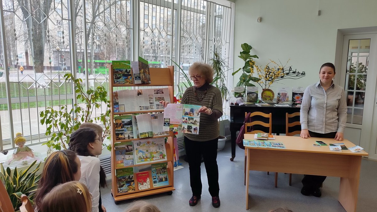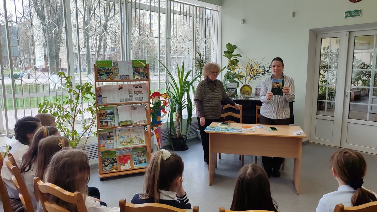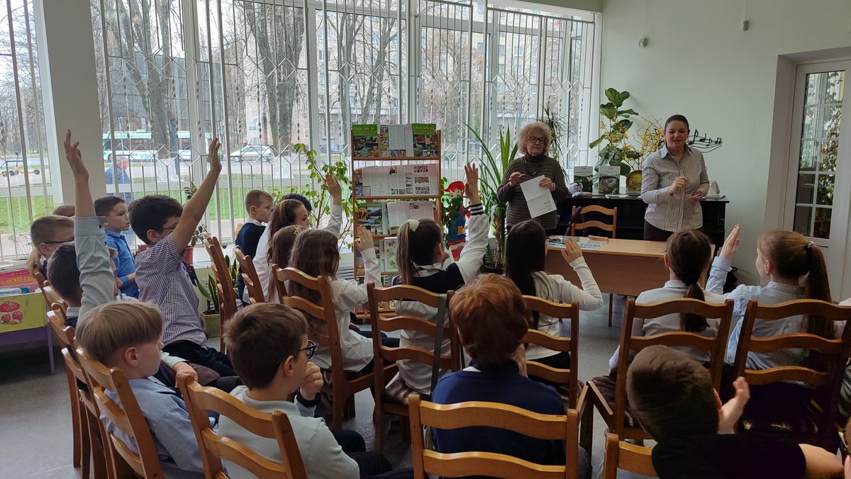 16 апреля в рамках проекта по экологическому просвещению младших школьников «Колокольчик» в библиотеке-филиале № 1 им. И.П. Мележа состоялась встреча с главным редактором журналов «Мир животных», «Эколог и Я» Натальей Слядневой и постоянным автором журналов, писателем Татьяной Денисковец, приуроченная ко Дню экологических знаний. На встрече присутствовали учащиеся 4 «А» класса ГУО «Средняя школа № 29 г. Гомеля».