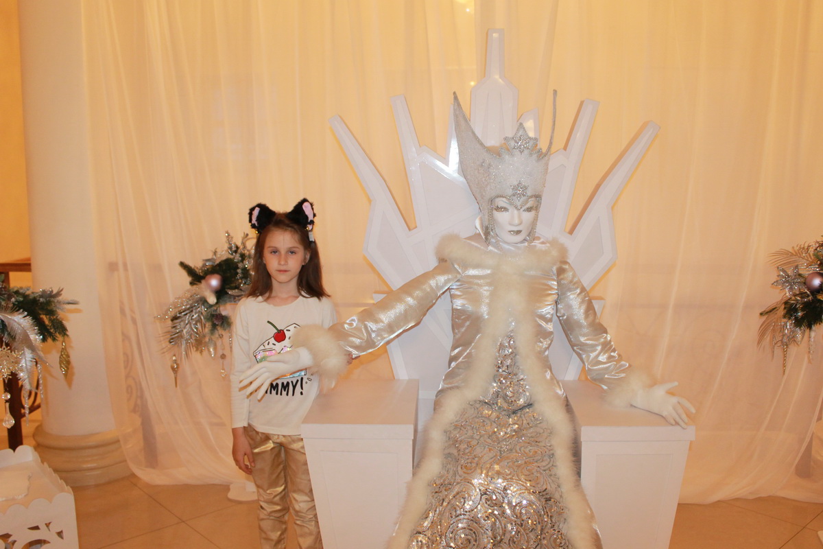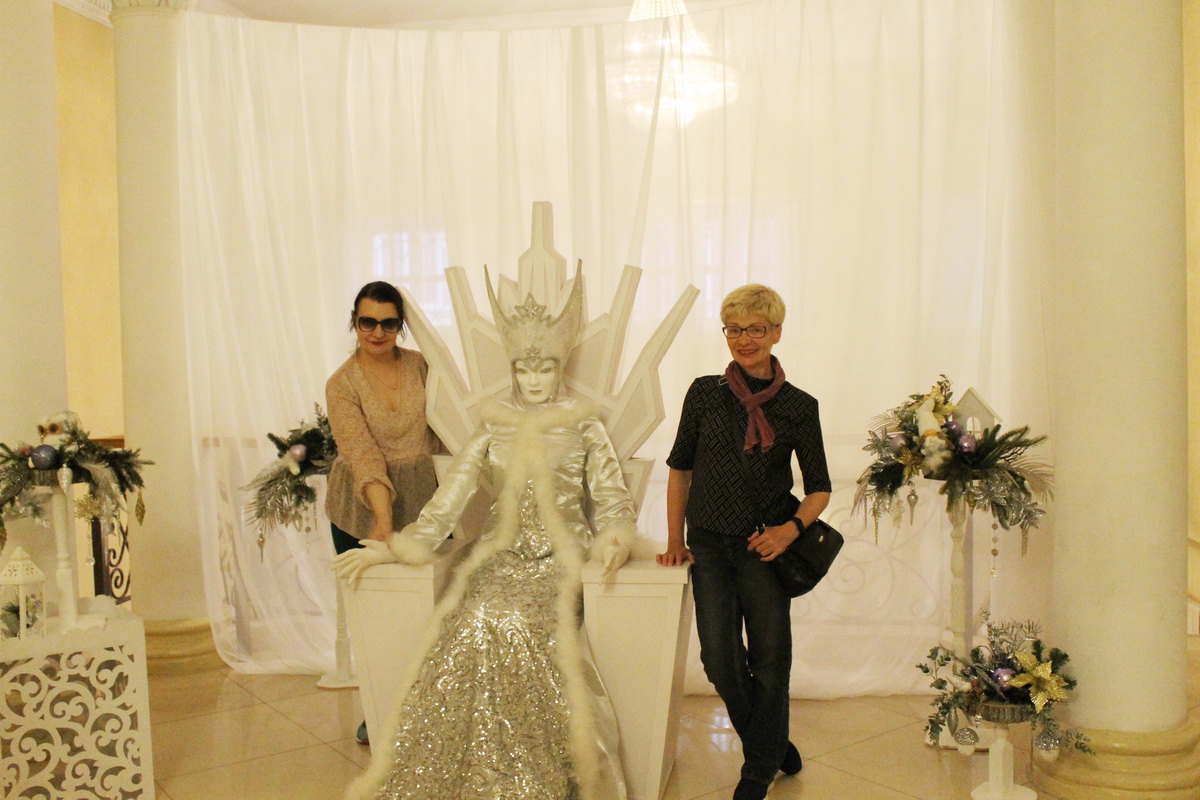 Фойе третьего этажа на несколько часов превратилось в страну вечных льдов – Лапландию. В царстве Снежной Королевы посетители складывали из льдинок слово «Вечность». Огромное количество красивых фотографий можно было сделать рядом со Снежной Королевой, сидящей на троне. Большой популярностью пользовалось и фотозона с Гердой и оленями.