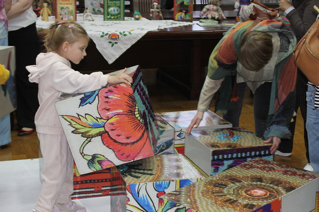 С белоруской народной культурой и сказками познакомила интерактивная программа «Спадчына беларускага народа», подготовленная совместно с филиалом Ветковского музея старообрядчества и белорусских традиций им. Ф.Г.Шклярова. Игра с кубиками-пазлами, которые нужно было расставить так, чтобы получился белорусский орнамент, знакомство с буквицами, интерактивное чтение сказки “Лёгкі хлеб” никого не оставили равнодушным.