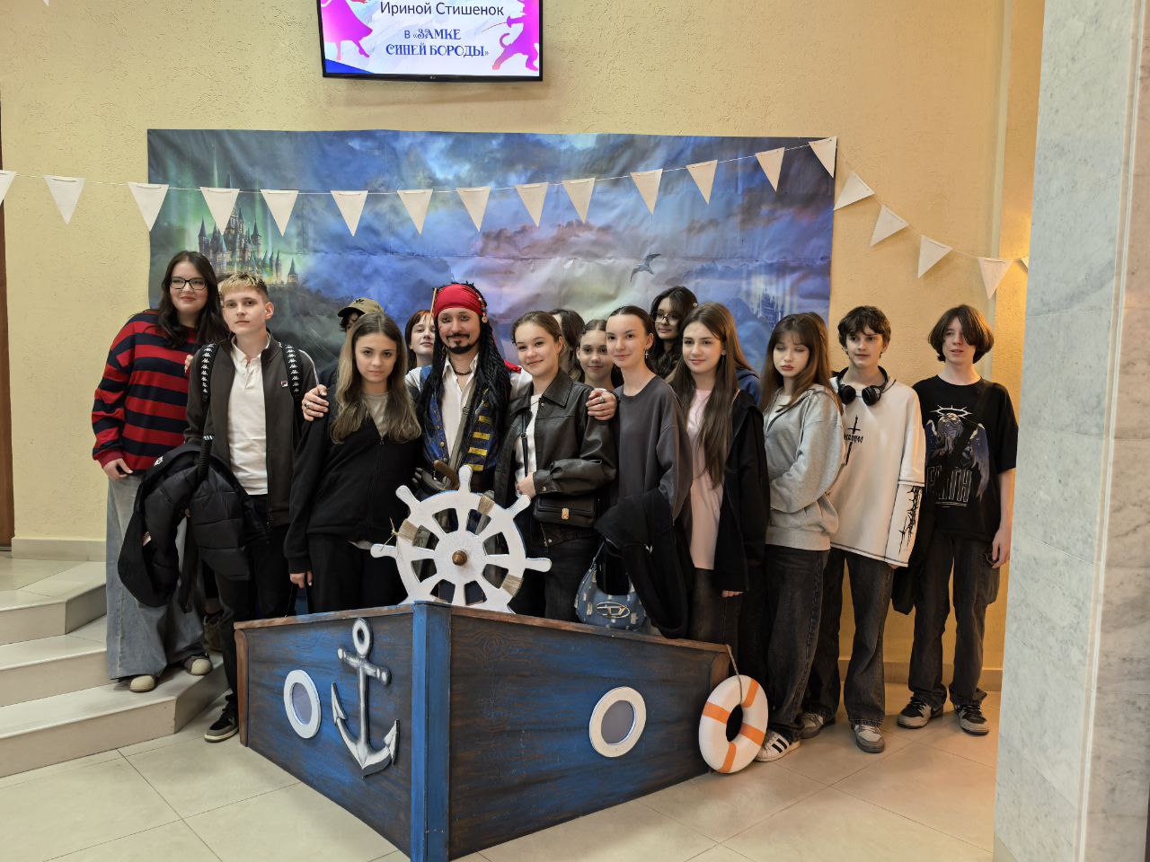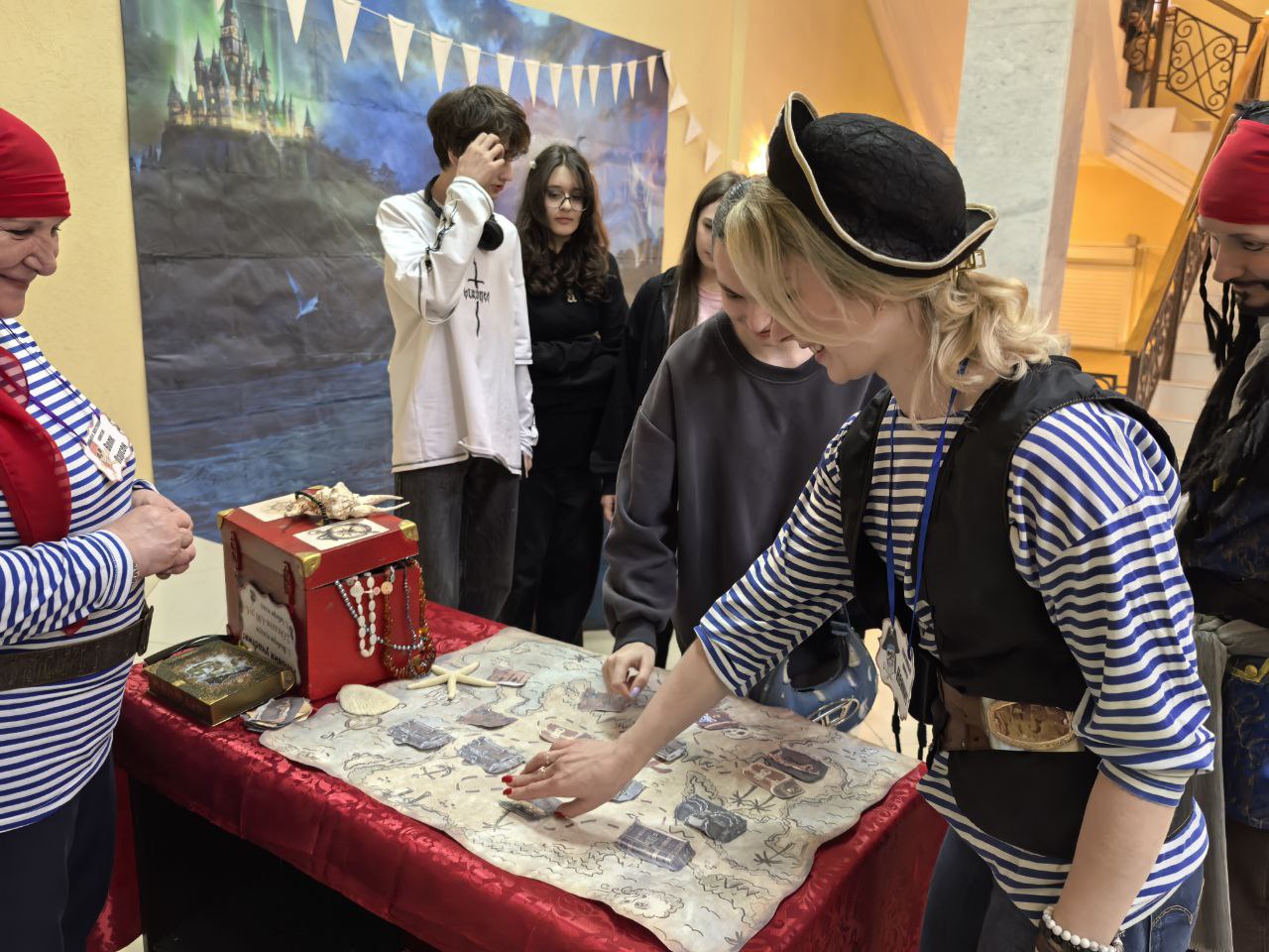 В фойе первого этажа гостей Библионочи поджидали коварные пираты во главе с капитаном Джеком Воробьём. Фотозона и игровая программа «Пираты книжных морей» пользовались огромной популярностью у участников сказочной ночи.