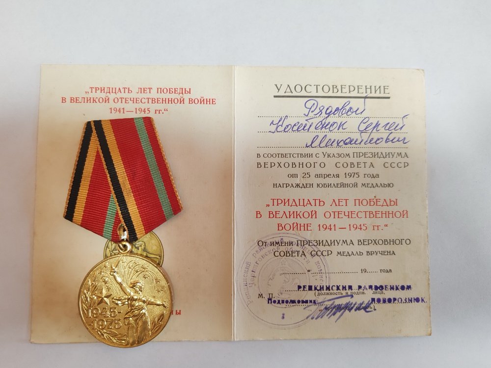 Юбилейная медаль «Тридцать лет Победы в Великой Отечественной войне 1941 – 1945 гг.» учреждена Указом Президиума Верховного Совета СССР от 25 апреля 1975 года в ознаменование 30-летия Победы над фашистской Германией в Великой Отечественной войне 1941—1945 гг..
