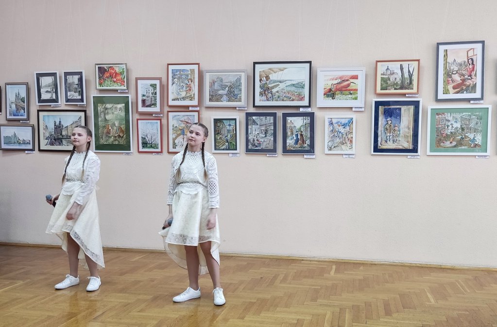 Музыкальным номером вернисаж открыли учащиеся объединения по интересам «Ассоль» Надежда и Любовь Гурщенковы.