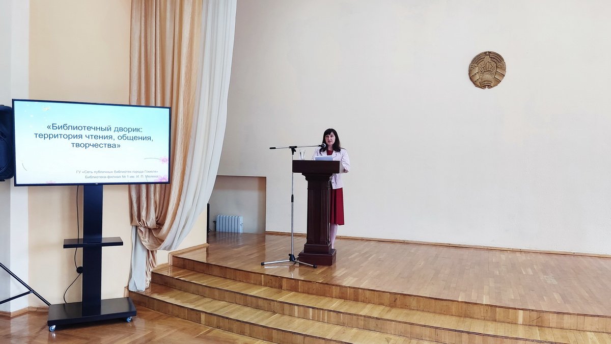 Лилия Анатольевна Капустина, заведующий библиотекой-филиалом №1, для своего выступления выбрала актуальную для летнего периода тему «Библиотечный дворик: территория чтения, общения, творчества», рассказав о создании для детей и подростков пространства под открытым небом для творчества и общения на основе книги, а также привлечения новых читателей.
