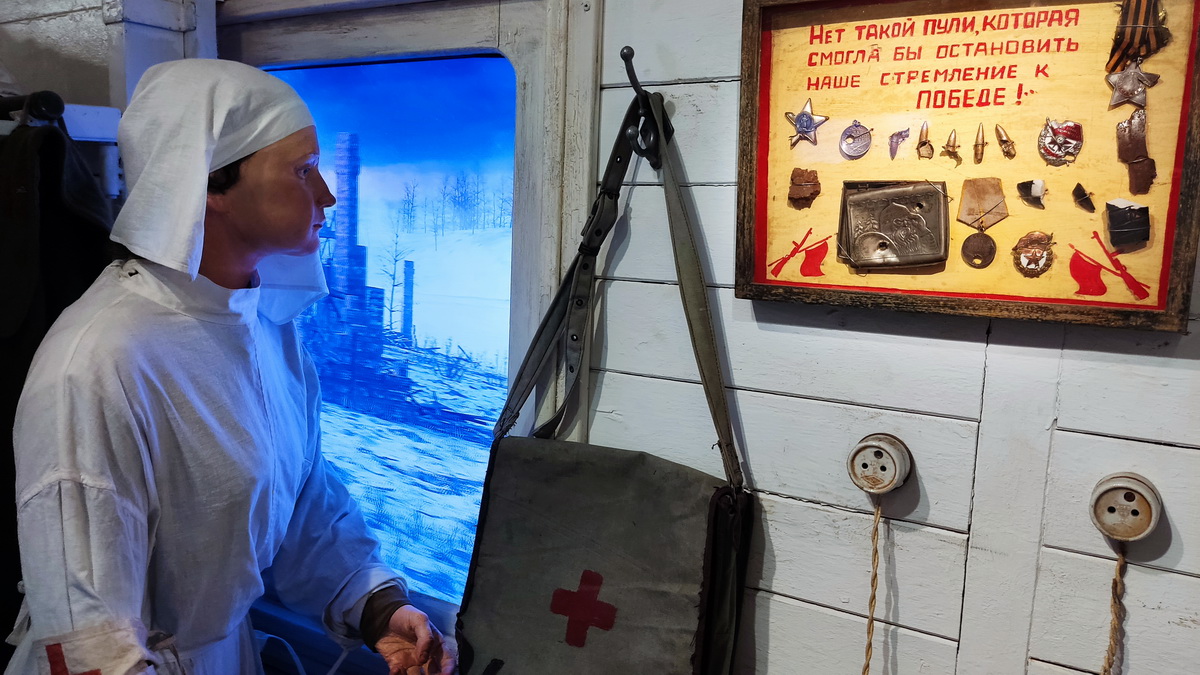 В 10 тематических вагонах воссоздана историческая реальность с помощью современных технологий. В них представлены последние мирные дни 1941-го, суровая реальность военного периода и победный май 1945 года.