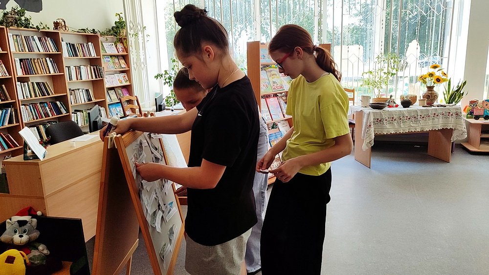На станции «Моя Беларусь» подростки отвечали на блиц-вопросы и заполняли поля лото, собрали деревянные пазлы «Карта районов Республики Беларуси». На остановке «Наши государственные символы» учащиеся вспомнили слова Государственного гимна Республики Беларусь, среди предложенных карточек выбирали изображения, которые есть на Государственном гербе Республики Беларусь.