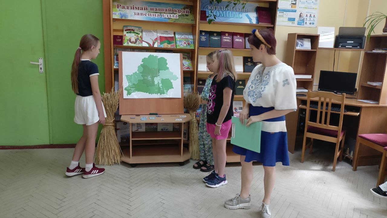 Детская библиотека-филиал № 15 пригласила учеников начальных классов ГУО «Средняя школа № 50 г. Гомеля», посещающих школьный лагерь, на познавательно-творческое мероприятие «С чего начинается моя Беларусь?».