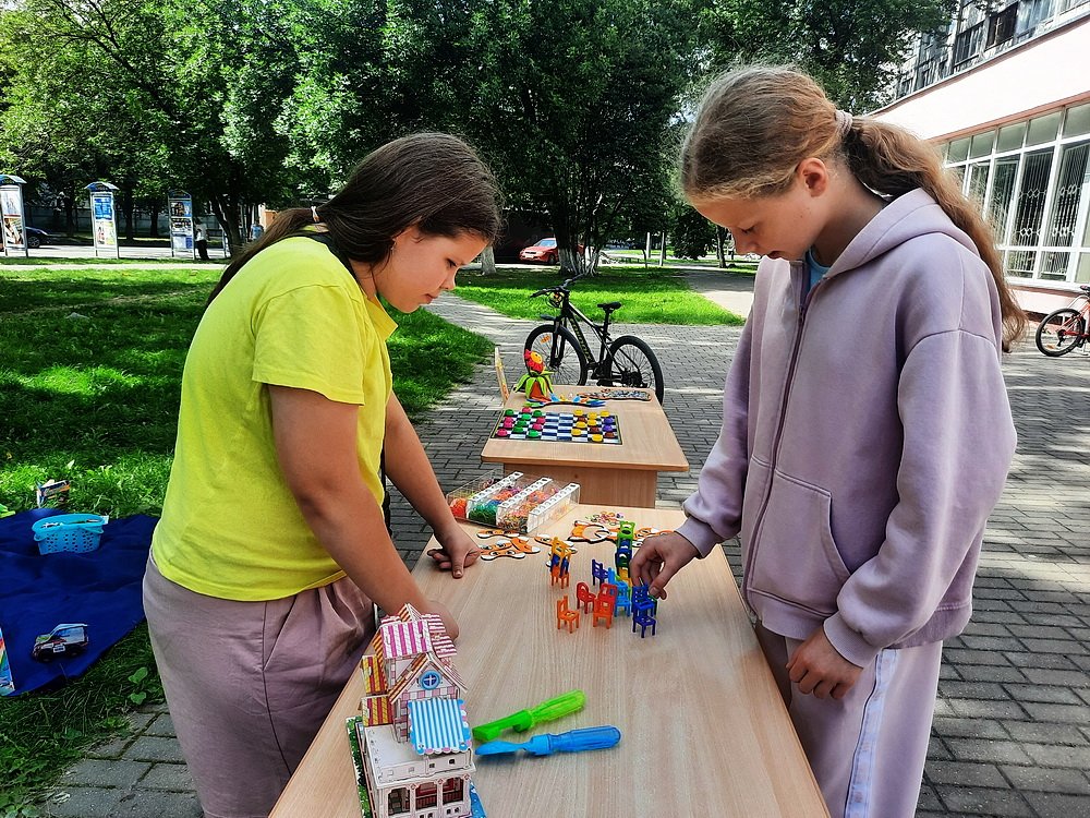 Ребята постарше делали украшения из фенечек, заселяли котят на свои места в домик из пазлов. Вот такое веселое лето у маленьких жителей нашего микрорайона!