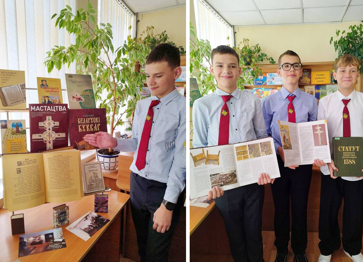 Также ребята познакомились с книжными изданиями и старинными предметами письма, представленными на интерактивной выставке “Ганаруся табой, Беларусь: асветнікі зямлі беларускай”.