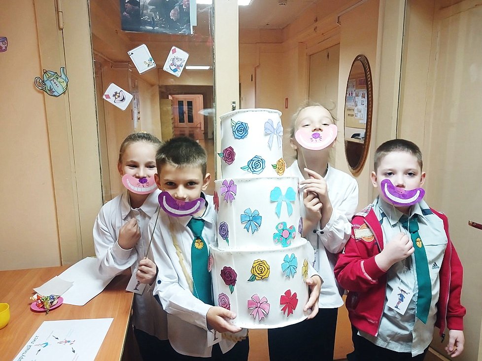 На станции «Дом Карлсона на крыше» дети помогли Карлсону найти его любимые плюшки; накормили его лучшим лекарством от всех болезней – вареньем; собрали по кусочкам портрет Малыша, который Карлсон случайно разбил во время очередной шалости. На станции «Вилла Курица» ребята смастерили необычное украшение для главной героини, дегустировали сладости, отгадав их на ощупь, сложили мозаику с изображением Пеппи. На станции «Страна чудес» школьники помогали найти Алисе ключ от двери в Страну чудес, разгадывали странный шифр Синей Гусеницы, дегустируя разноцветные жевательные бобы, подбирали ингредиенты для уменьшающего зелья. После выполнения всех заданий, на каждой станции ребята получали кусочек пазла и сладкий приз.