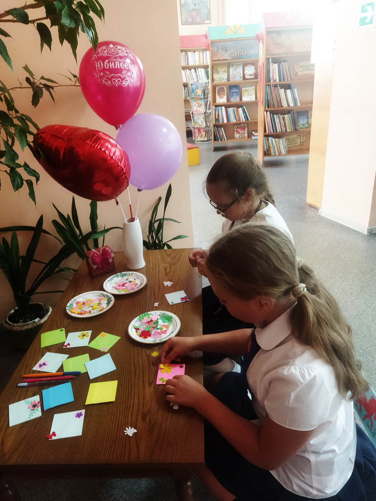 Детской библиотеке-филиалу №10 им. В.Ю. Драгунского в 2025 году исполнилось 55 лет. В рамках недели библиотек прошла акция «Поздравь библиотеку с юбилеем». Все желающие могли сделать поздравительную открытку своими руками и оставить свои поздравления и пожелания, сфотографироваться в фотозоне «Вместе сквозь десятилетия».
