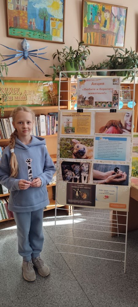В детской библиотеке-филиале №10 им. В.Ю. Драгунского совместно со специалистами учреждения «Гомельский городской центр социального обслуживания семьи и детей» была организована информационно-познавательная акция «Любите и берегите животных» ко Всемирному дню защиты животных.