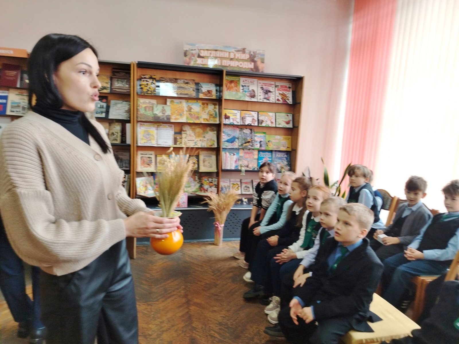 Приглашенные на мероприятие учащиеся 2 «А» класса ГУО «Гомельская Ирининская гимназия» узнали, почему праздник хлеба отмечается осенью, как вырастить хлеб, какой длинный путь он проходит от зёрнышка до ароматной булки, как хлеб выращивали раньше, как сейчас убирают урожай и почему хлеб – символ достатка и благополучия в доме. Также ребята услышали новые для них слова: сноп, элеватор, мукомольный завод и другие.