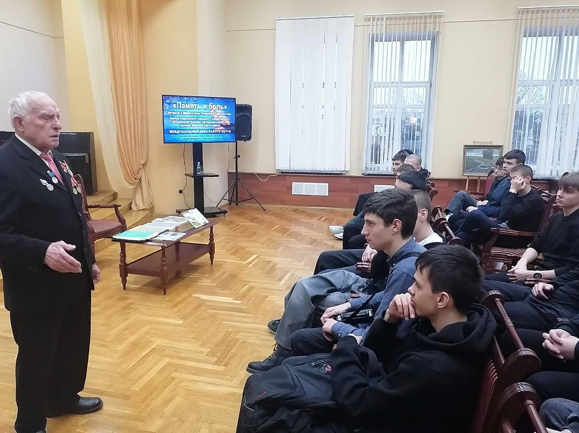 Николай Павлович, известный своей активной просветительской работой, провел патриотическую беседу с молодежью. Он поделился воспоминаниями о суровых испытаниях Второй мировой войны, ужасах концлагеря и своем пути после 1945 года.