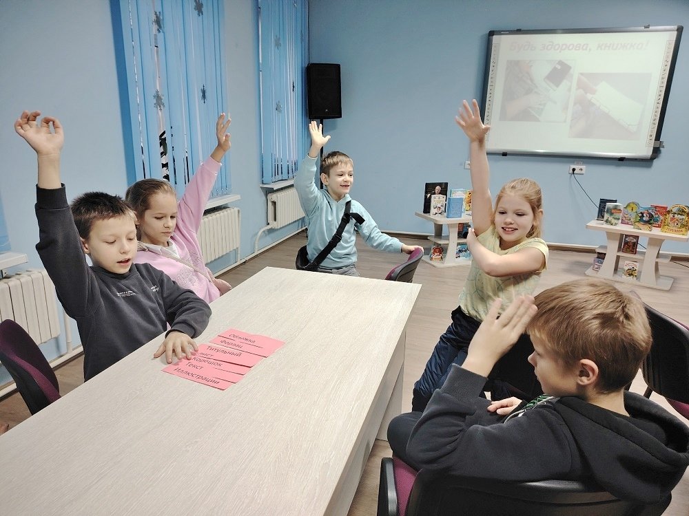 20 декабря в библиотеке-филиале №4 прошел урок-игра «Что у книжки под обложкой?» для учащихся 2 «А», 2 «В» и 4 «В» классов ГУО «Средняя школа №53 г. Гомеля».