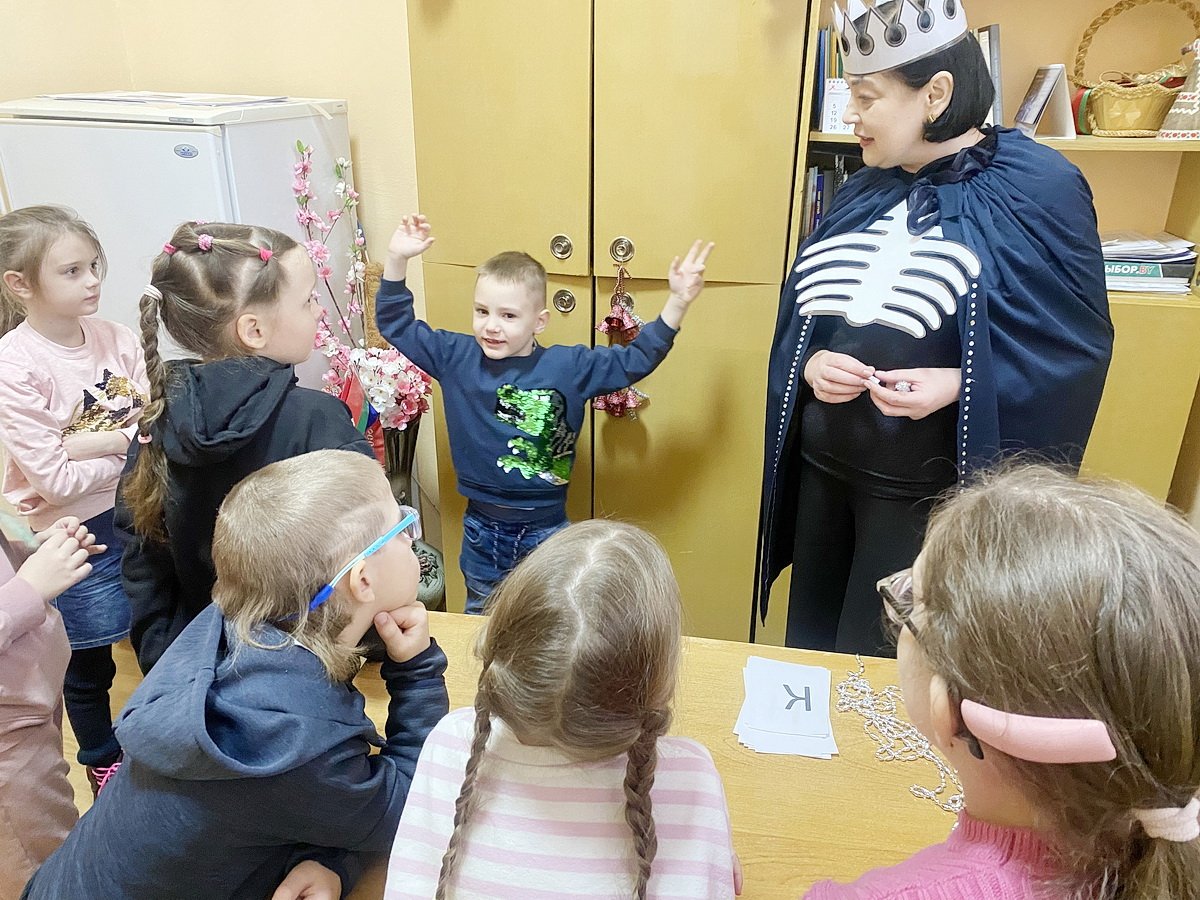 Кульминацией приключения стала «Избушка Бабы Яги», где участников ждали динамичные эстафеты на ловкость. Ребята гоняли воздушные шарики метлами, соревновались в меткости, бросая бумажные снежки в корзины, и искали спрятанные по всей библиотеке бумажные мухоморы. Справившись со всеми заданиями Бабы-Яги, дети освободили Снегурочку и вернули украденные подарки.