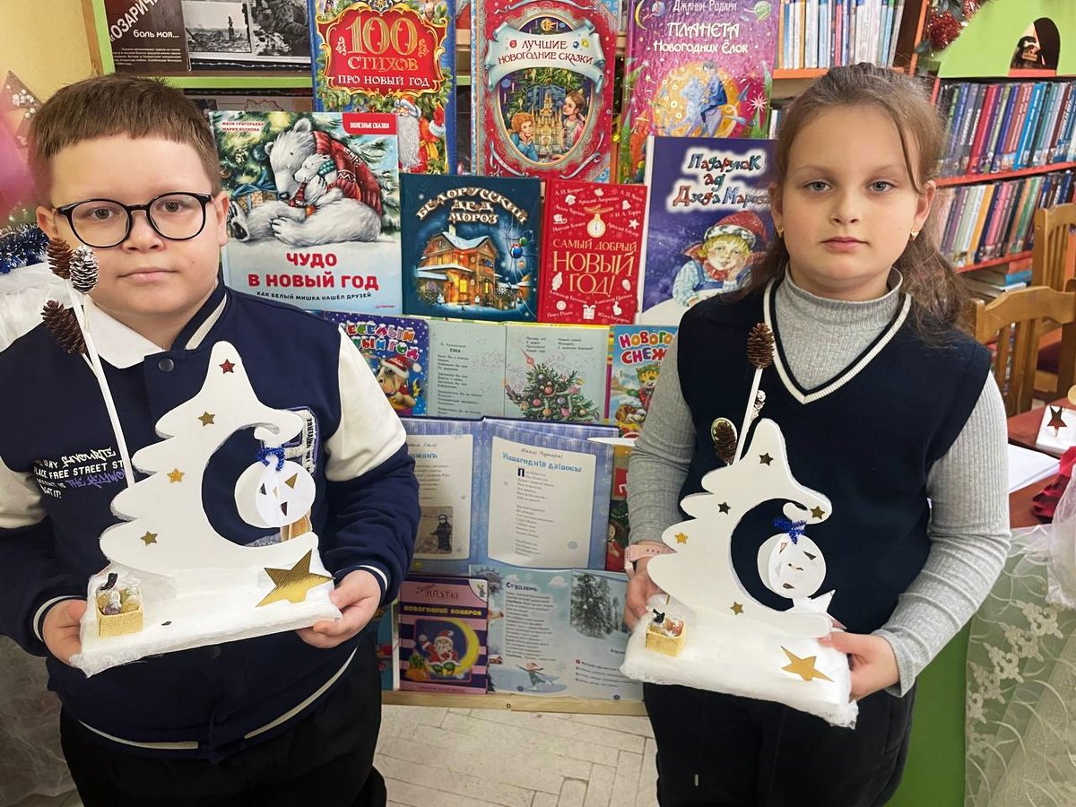 детская библиотека-филиал № 15 пригласила учеников начальных классов ГУО «Средняя школа № 57 г. Гомеля», посещающих школьный лагерь, на мастер-класс по изготовлению новогодних украшений «Игрушки, снежинки, хлопушки».В ходе мероприятия школьники узнали о том, когда появилась традиция украшать елку, какими были первые новогодние украшения. Библиотекарь продемонстрировала поделки, сделанные ребятами, посещающими библиотеку, и предложила сделать необычную новогоднюю композицию «Подарки под елкой».