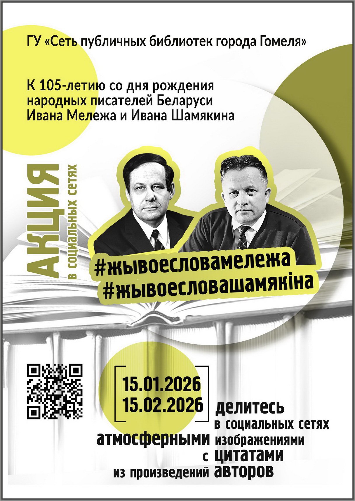 К юбилею классиков белорусской литературы ГУ «Сеть публичных библиотек города Гомеля» запускает акцию в социальных сетях #жывоесловамележа / #жывоесловашамякіна.