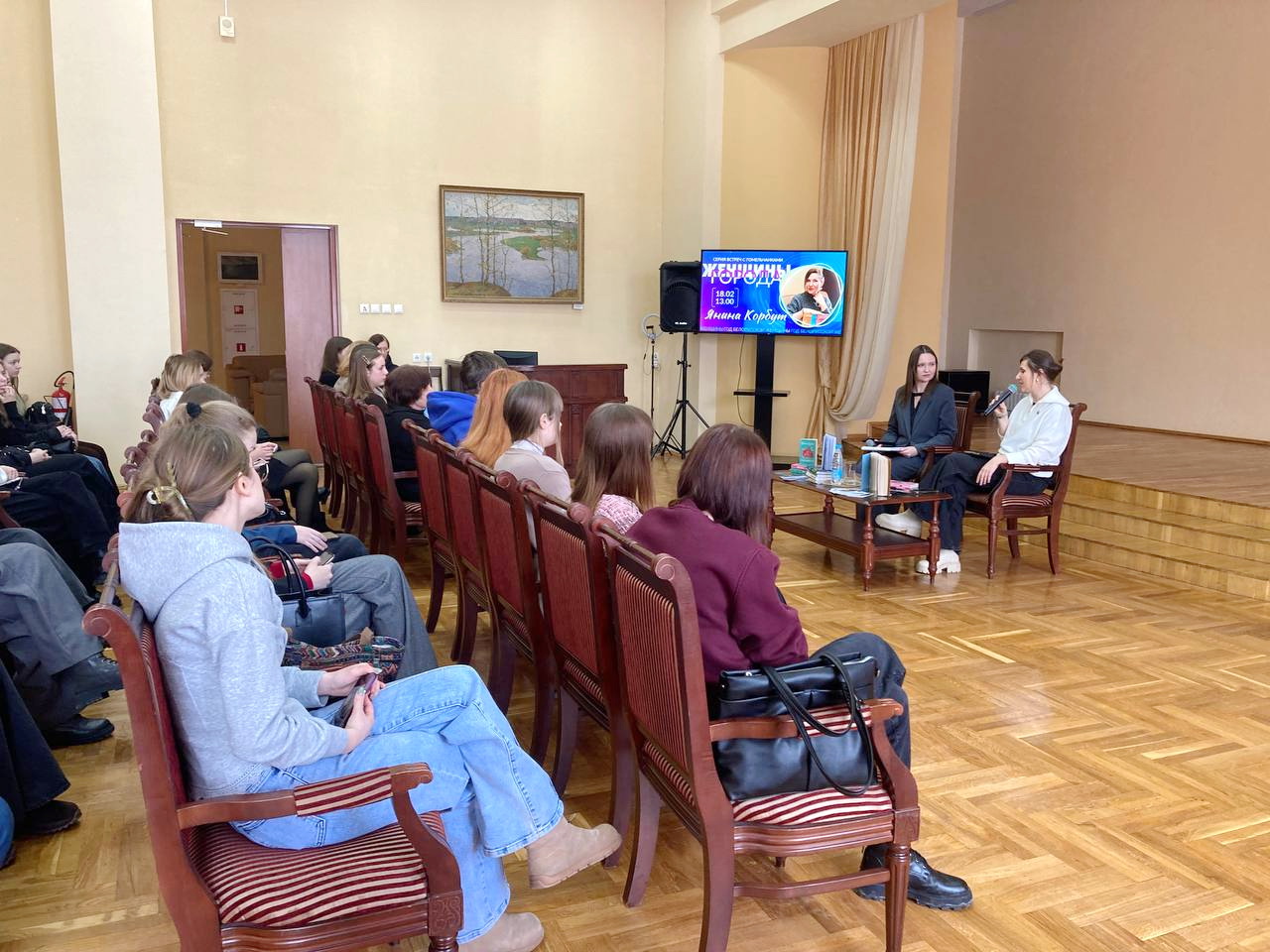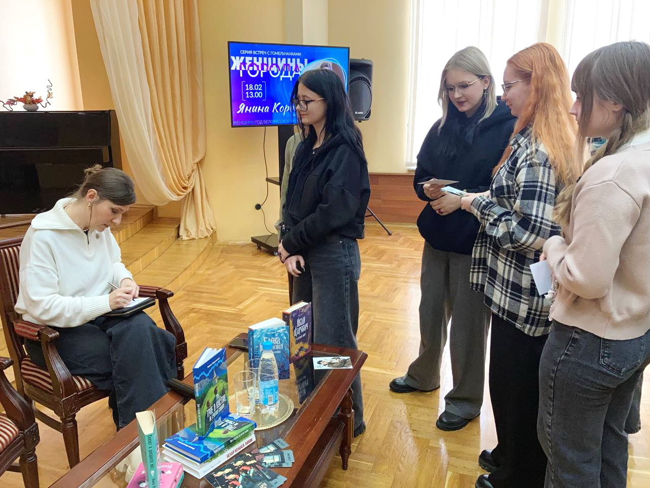 Вторая часть встречи была посвящена Году белорусской женщины. Во время беседы автор поделилась мыслями о том, что для нее означает этот год, о роли женщины в современном обществе и пожелала всем женщинам Беларуси не ждать подходящего времени для самореализации, а действовать прямо сейчас!