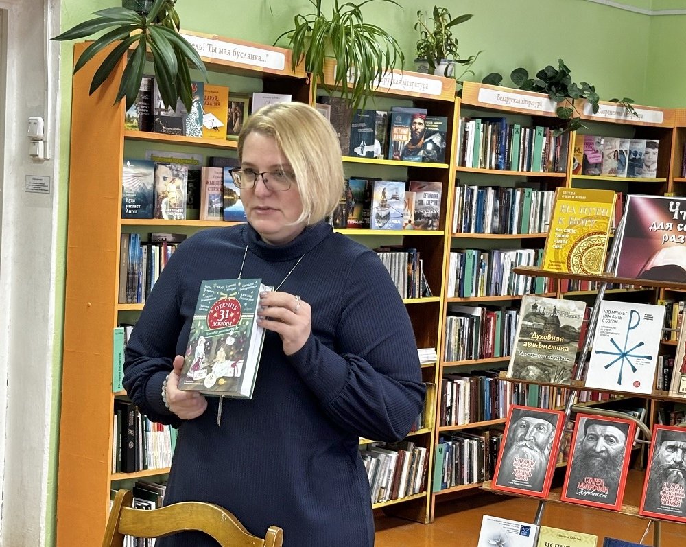 Сотрудники библиотеки провели обзор новинок духовной литературы, поступившей в библиотеку, а также переданных в дар преподавателем воскресной школы при храме святого благоверного князя Александра Невского Ириной Валентиновной Игнатович.