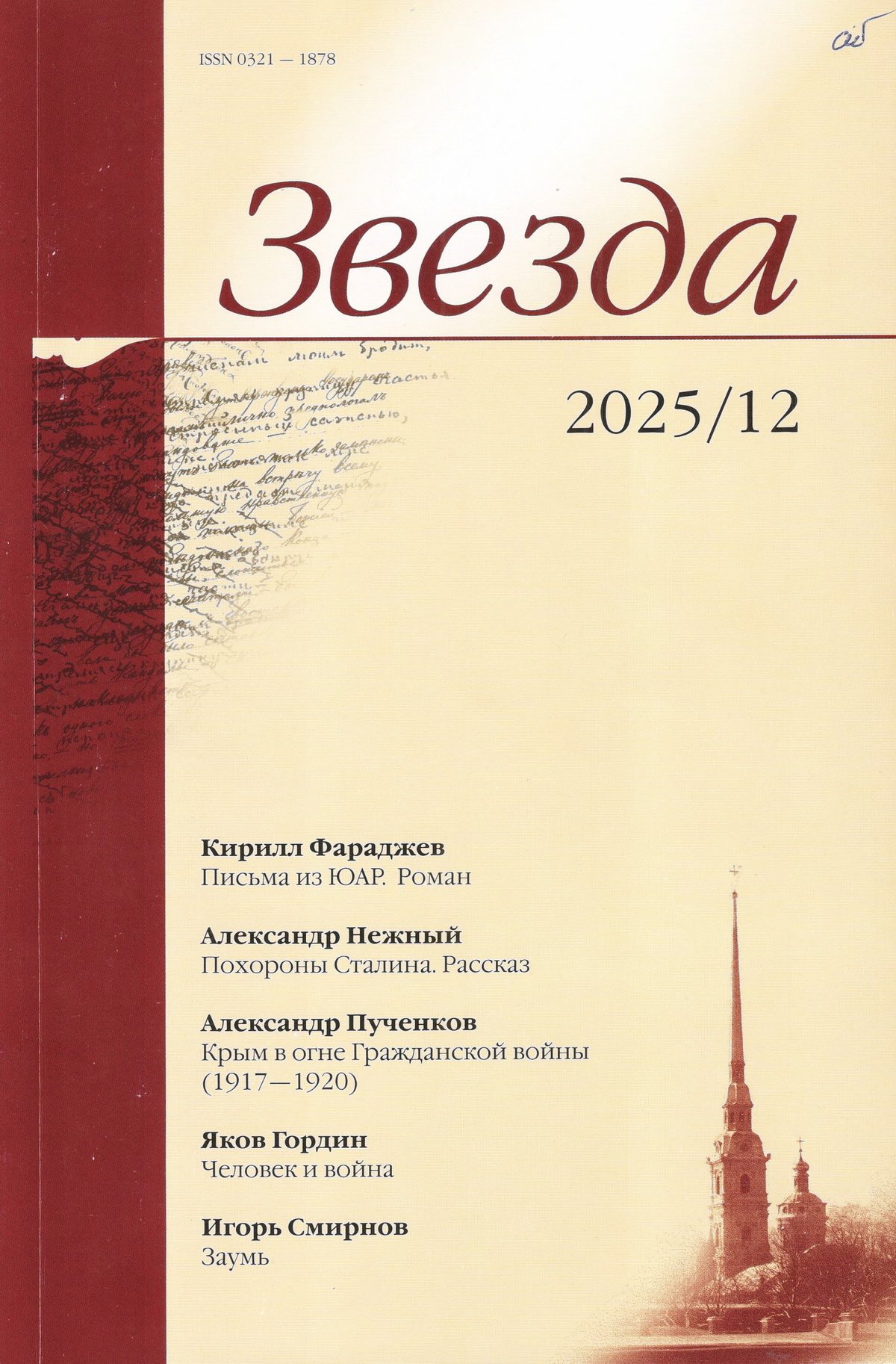 Новинки литературных журналов. Декабрь 2025.«Звезда» №12/2025