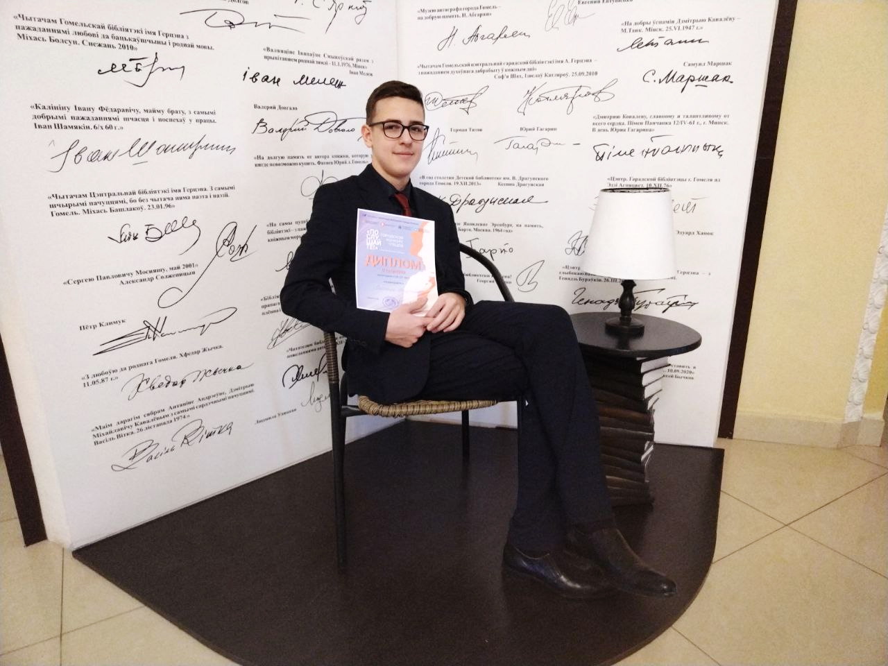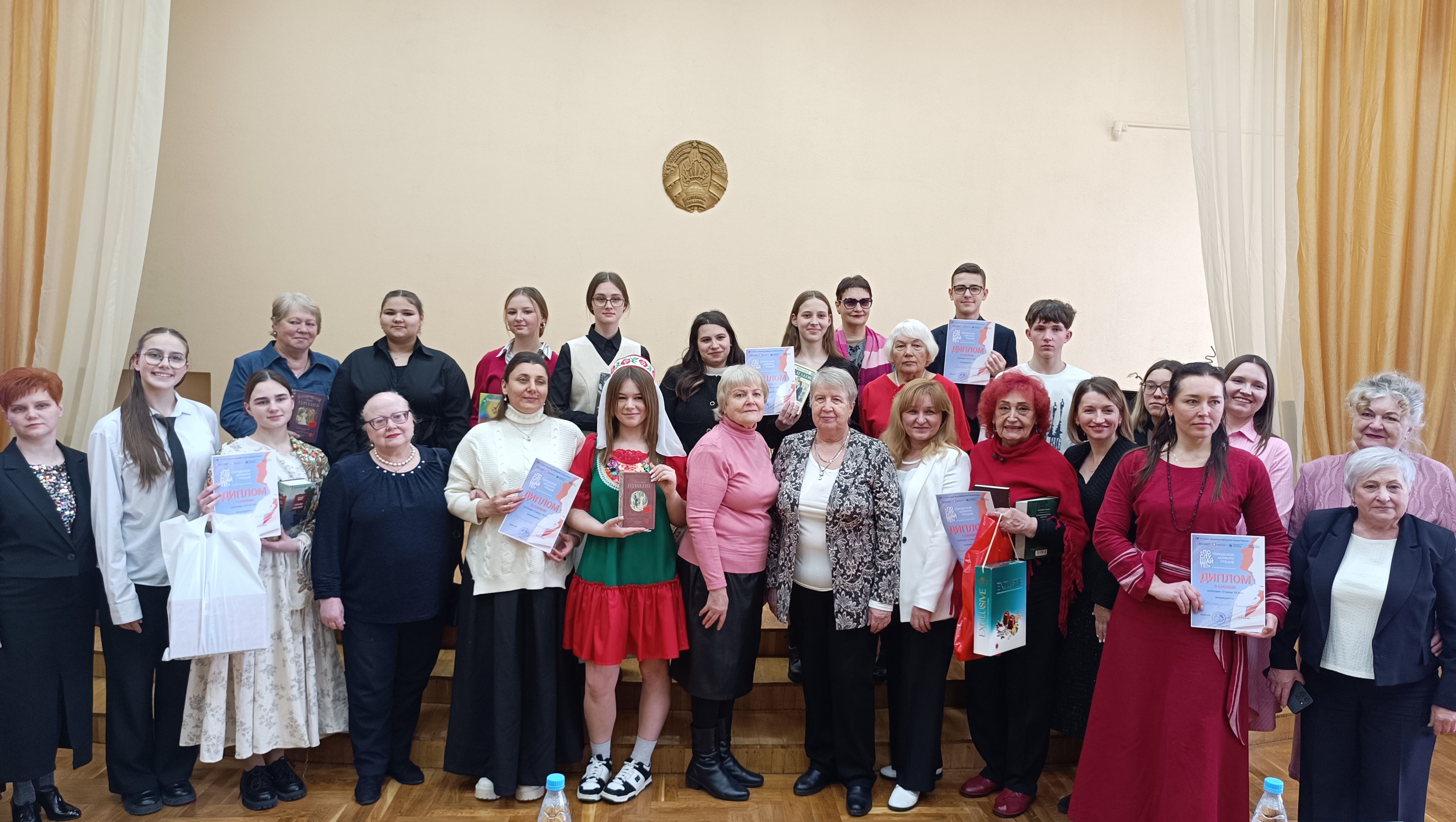 Их поздравили директор ГУ «Сеть публичных библиотек города Гомеля» Светлана Вячеславовна Богдан, представитель филиала представительства Россотрудничества в Республике Беларусь «Русский дом в Гомеле» Гончарова Екатерина Александровна и редактор отдела культурной жизни учреждения «Редакция газеты «Гомельские ведомости» Дмитрий Чернявский.