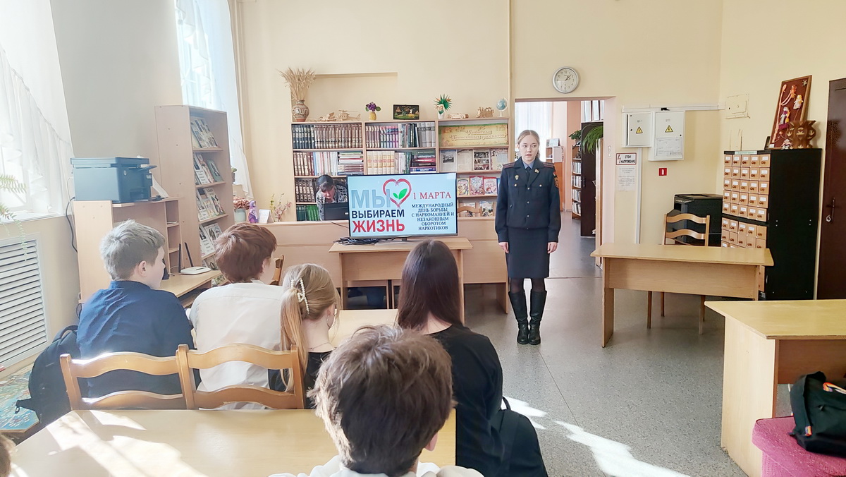 2 марта в детской библиотеке-филиале № 10 им. В. Ю. Драгунского к Международному дню борьбы с наркоманией и наркобизнесом прошел информационный час «За жизнь без наркотиков» с участковым инспектором инспекции по делам несовершеннолетних Железнодорожного района младшим лейтенантом Литвиновой Елизаветой Михайловной. На мероприятие были приглашены учащиеся 8-х классов ГУО «Средняя школа № 8 г. Гомеля».