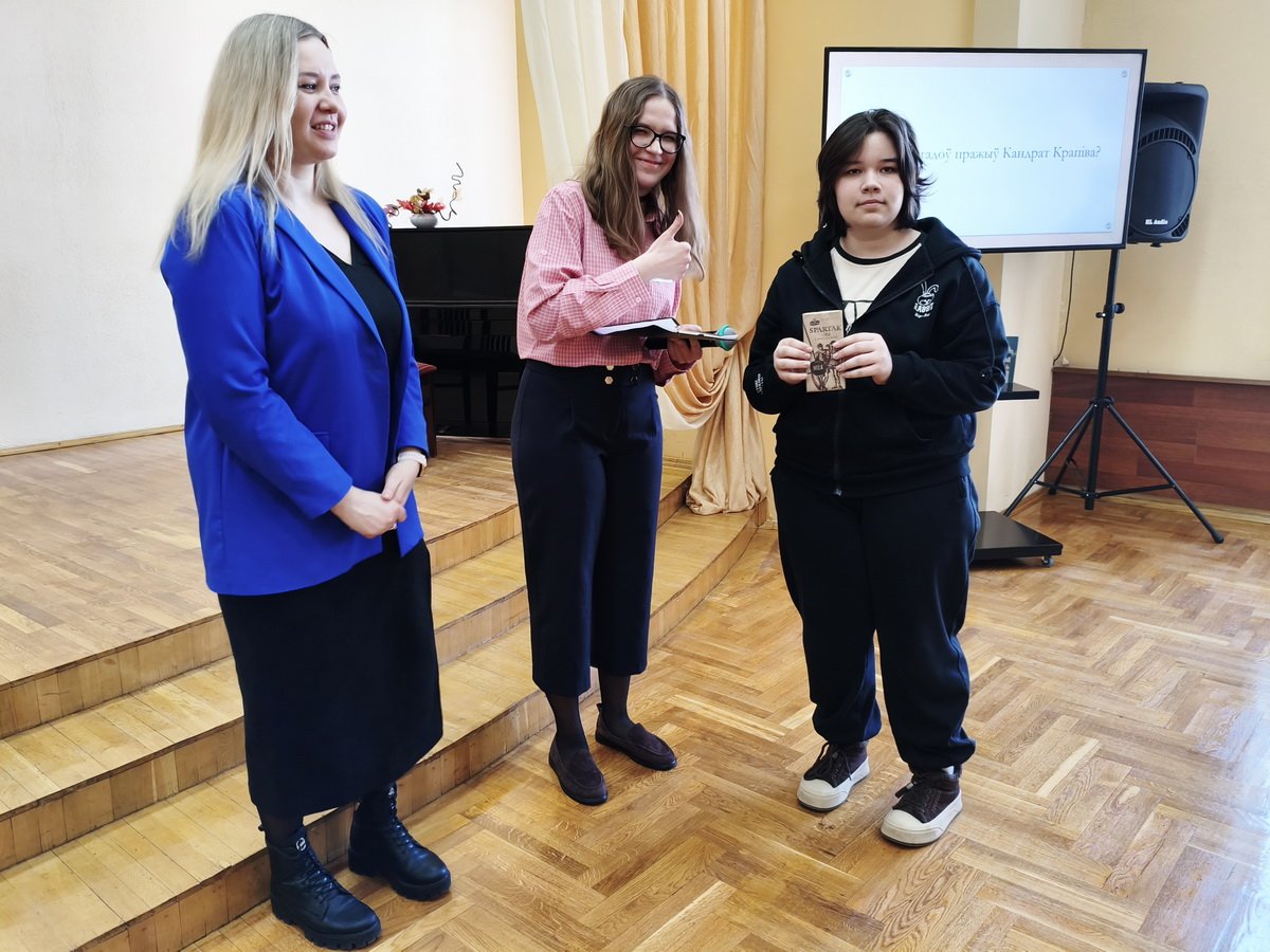 Вучні адказвалі на пытанні, прысвечаныя жыцці і творчасці байкапісца, а самая актыўная ўдзельніца атрымала падарунак.