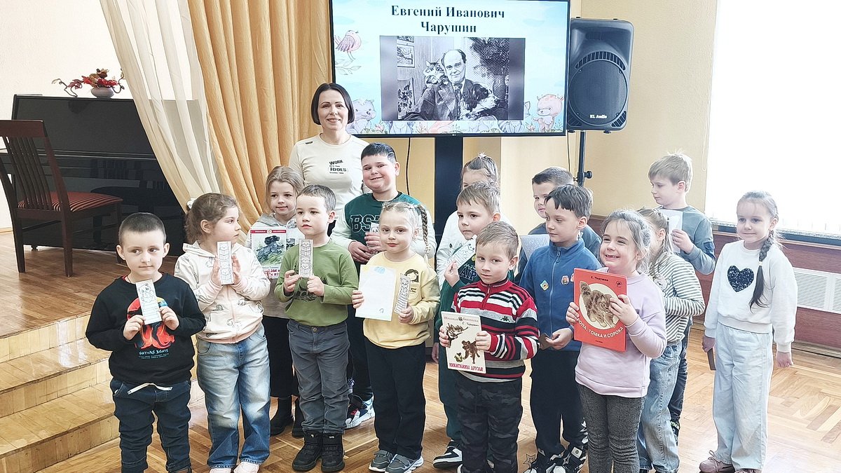 Ребята познакомились с жизнью и творчеством писателя, узнали, что Евгений Чарушин, изучая природу и животный мир, выражал свои наблюдения и впечатления в словах, а то, что не мог выразить словами, передавал с помощью кисти и карандаша. Дети активно отвечали на вопросы викторины «Волшебный мир зверей и птиц», с удовольствием поучаствовали в веселых конкурсах: «Кто как из животных разговаривает», «Кто есть кто», «Угадай зверя», «Кто так поёт?».