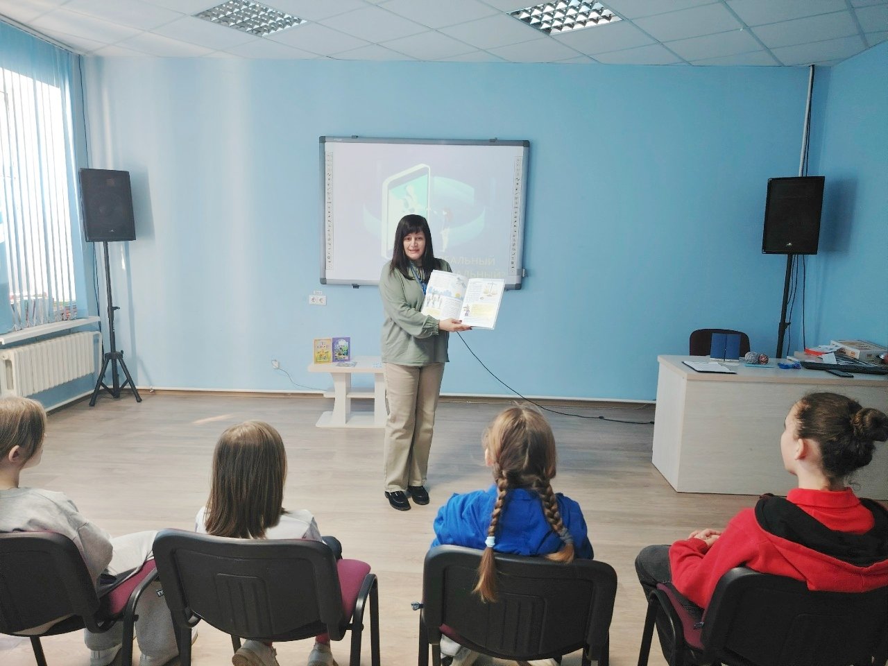 Состоялся просмотр мультфильма «Фиксики – Фикси-советы. Осторожней в Интернете!», а затем учащиеся познакомились с книгой Элины Сапожниковой «Детям об информационной безопасности».