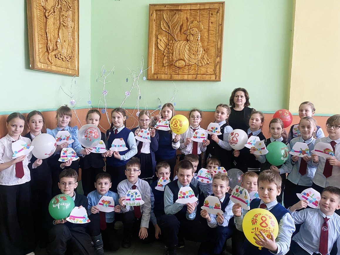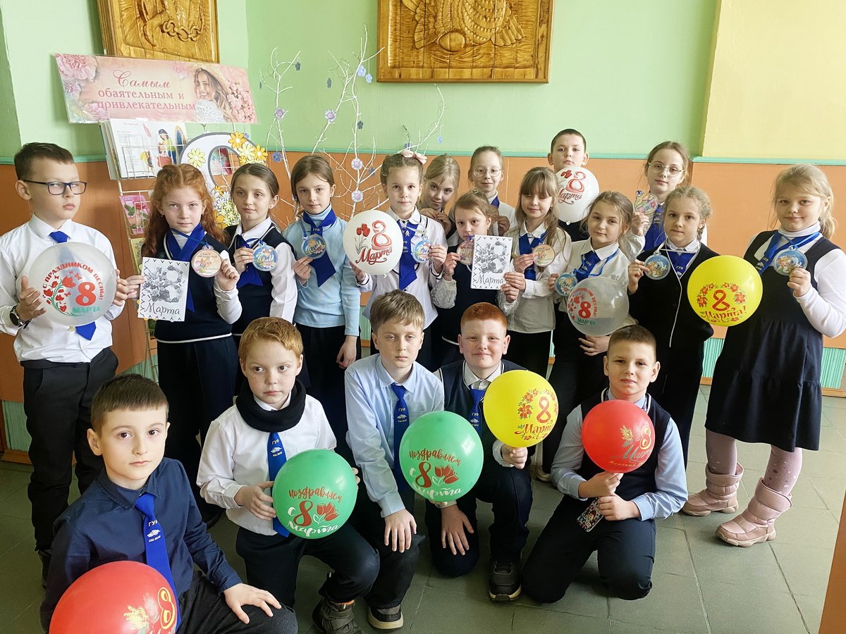 В конце мероприятия мальчики сложили из собранных цветов большую открытку и поздравили одноклассниц. Кульминацией праздника стало награждение: каждая девочка получила памятную медаль. Праздник получился очень веселым и запоминающимся. Дети не только посоревновались в ловкости и смекалке, но и подарили друг другу настоящее праздничное настроение.