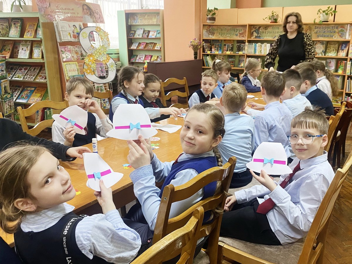 Сотрудники библиотеки предложили школьникам выбрать, какую поделку они будут делать. Ученики ГУО «Средняя школа № 50 г. Гомеля» решили оформить орхидеями из покрашенных салфеток тематическую праздничную корзинку, которую можно наполнить сладостями, а ученики 2 «А» класса ГУО «Средняя школа № 57 г. Гомеля» из цветной бумаги, пластиковых трубочек и картона собрали букет из разноцветных тюльпанов.