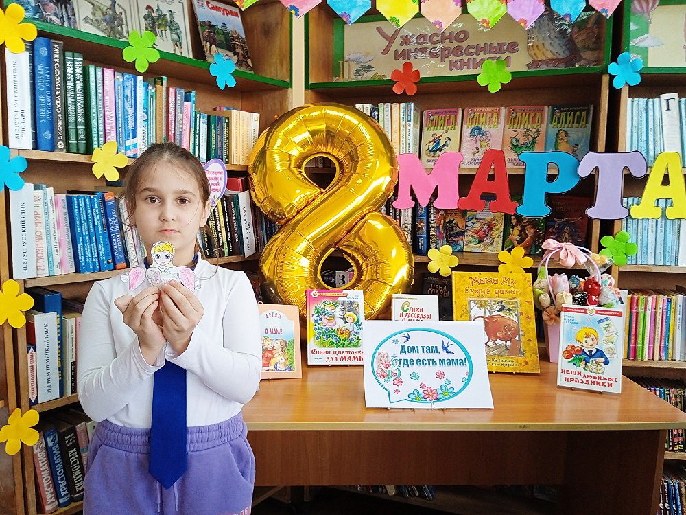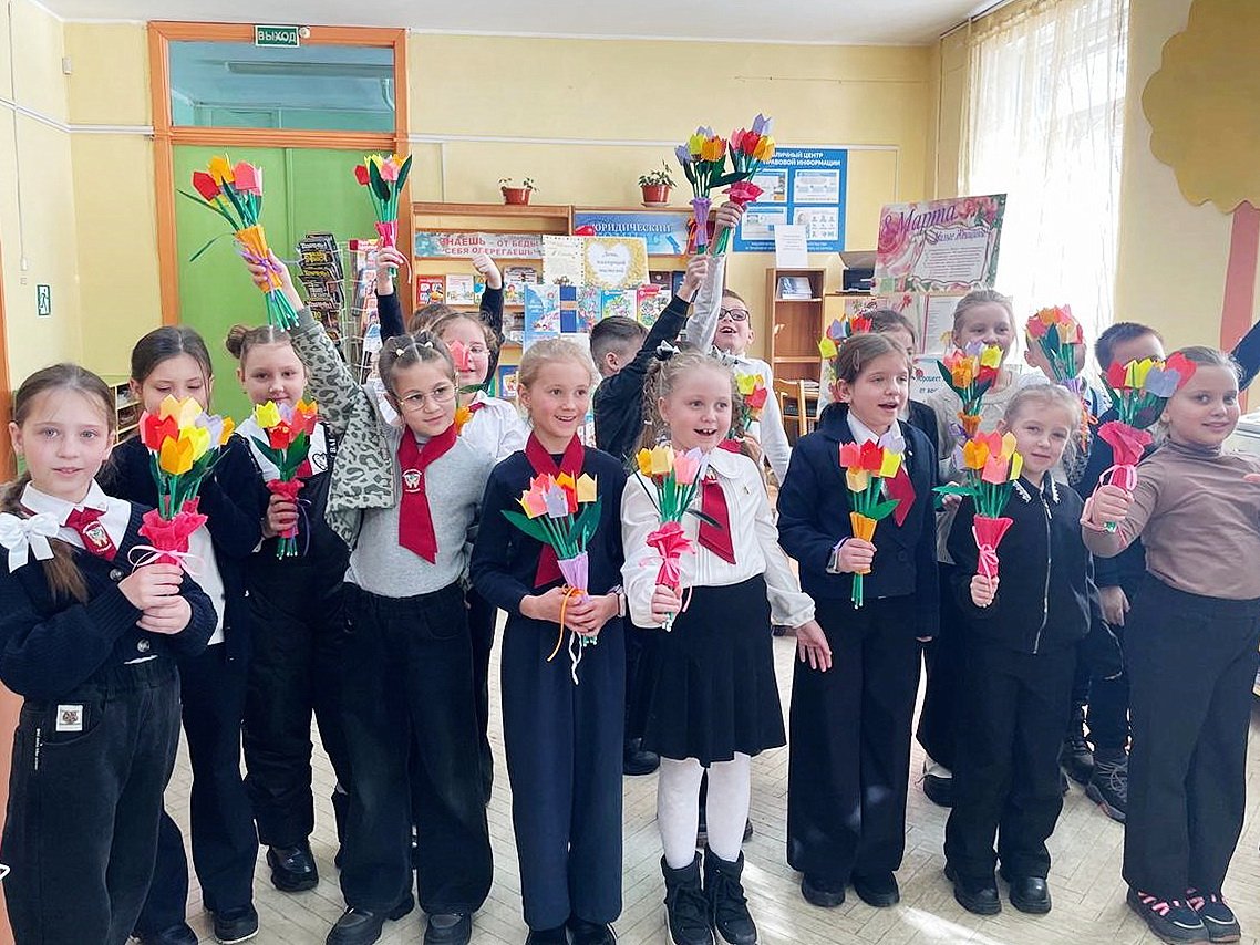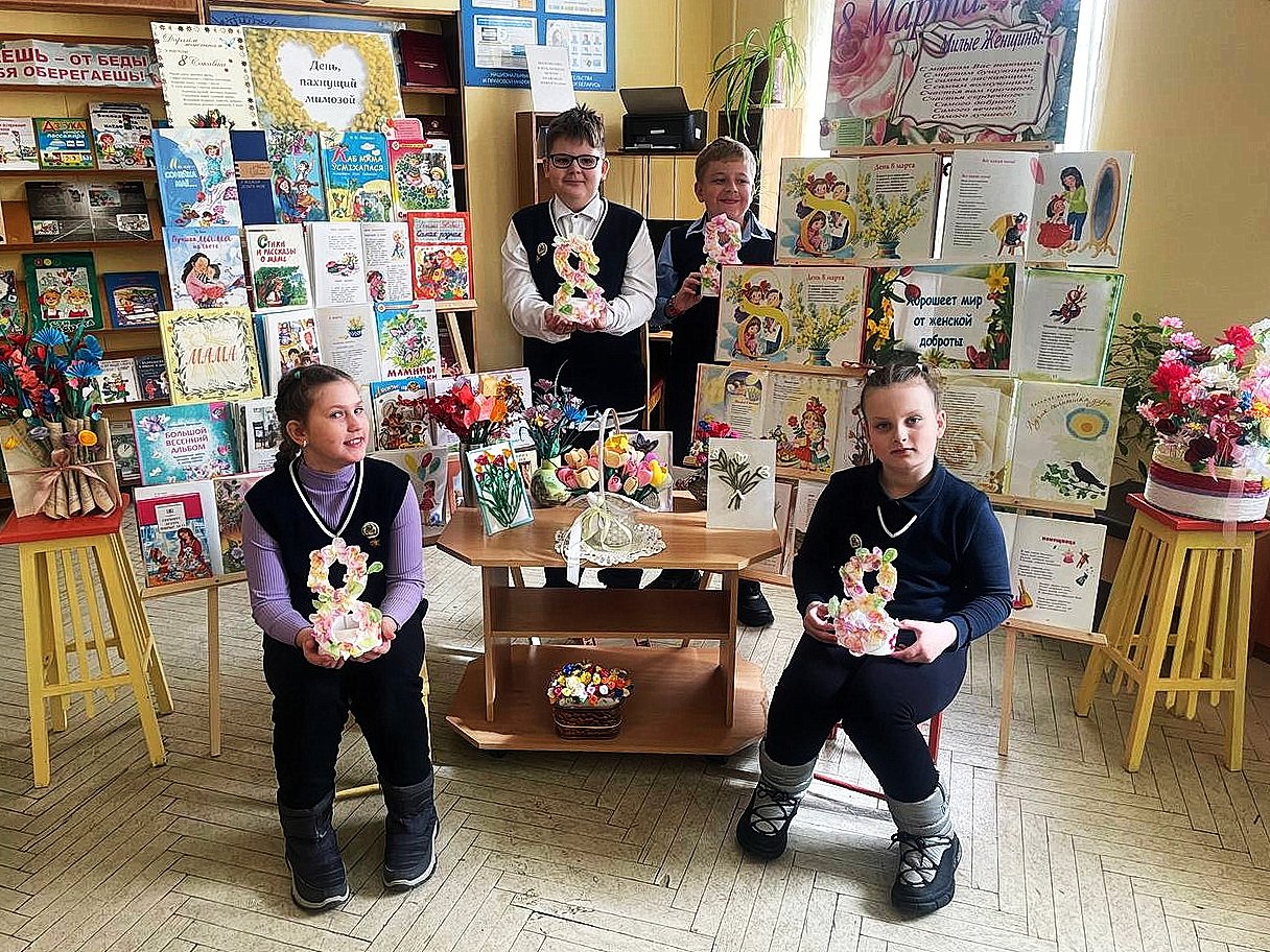 Сотрудники библиотеки познакомили школьников с историей праздника. Ребята вспомнили стихи, которые они разучили в преддверии 8 марта, и поделились идеями, как можно поздравить своих мам и бабушек.