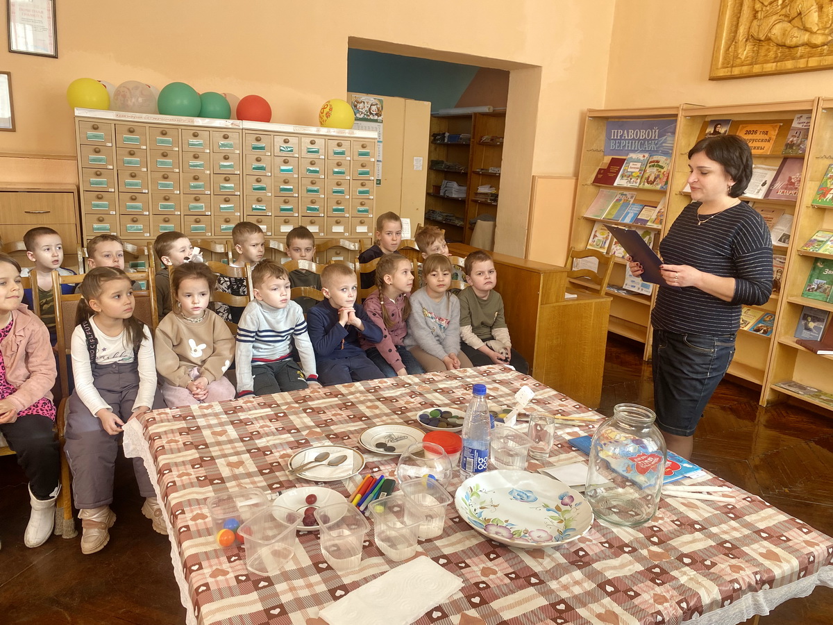 В детской библиотеке-филиале №16 состоялась увлекательная встреча с воспитанниками ГУО «Специальный детский сад №99 г. Гомеля». Ребята стали участниками познавательного мероприятия под названием «Маленький профессор», которое превратило библиотеку в настоящую природную лабораторию. Главной темой встречи стало удивительное вещество, без которого невозможна жизнь на Земле, – вода. Вместе с ведущей малыши отгадывали загадки и выяснили, что вода не имеет вкуса, запаха и цвета, но её значение для всего живого огромно. Главной темой встречи стало удивительное вещество, без которого невозможна жизнь на Земле, – вода. Вместе с ведущей малыши отгадывали загадки и выяснили, что вода не имеет вкуса, запаха и цвета, но её значение для всего живого огромно.