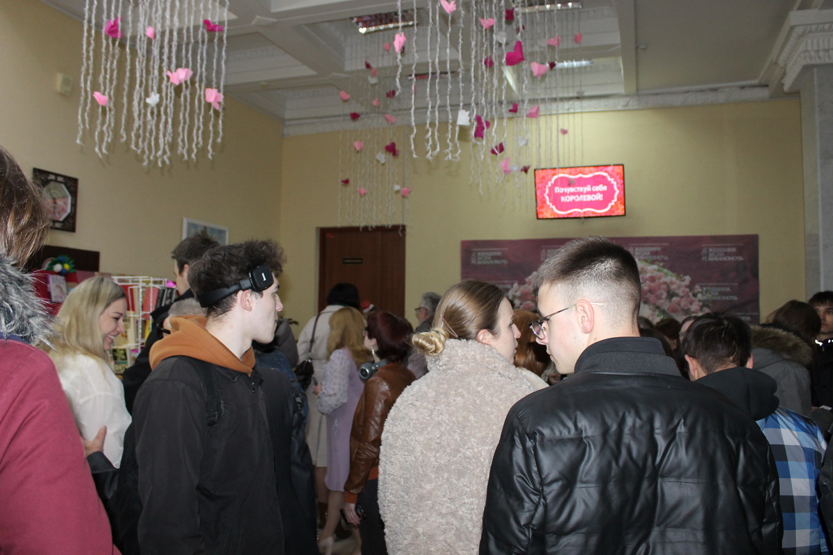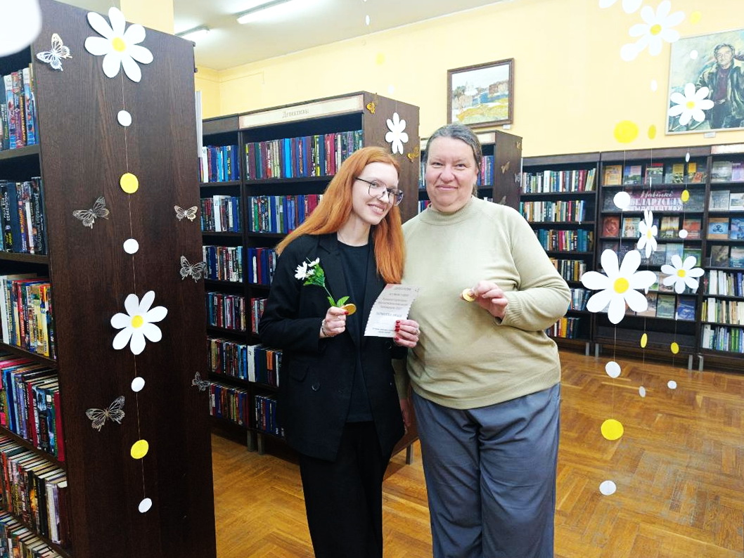 В фойе 1-го этажа гости окунулись в мир литературных приключений. Интерактивная игра «Сошедшие с книжных страниц» позволила каждому почувствовать себя частью любимых историй, а беспроигрышная лотерея «Всем везет!» подарила приятные сюрпризы и отличное настроение. Посетители библиотеки не упустили возможность запечатлеть себя в образе настоящей королевы в волшебной фотозоне «Почувствуй себя королевой!».