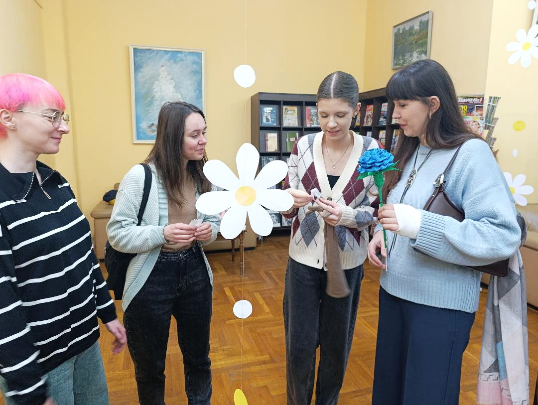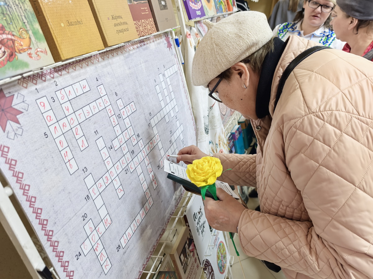 Фойе 2-го этажа библиотеки превратилось в настоящий уголок белорусской культуры. Интерактивная программа “Беларусачкі” познакомила посетителей с самобытными обычаями и народными играми. Выставки-игры “Кола святаў” и “Беларуская хатка” позволили прикоснуться к истории и традициям, а игра “Кулінарная спадчына” раскрыла секреты национальной кухни. Особое внимание было уделено женскому мастерству: мастер-класс по изготовлению оберегов подарили возможность создать что-то уникальное своими руками, а мастер-класс по завязыванию старинного женского головного убора намиток показал, что она многим очень к лицу. Завершили погружение в национальный колорит фотозона “Традыцыйны беларускі касцюм” и музыкальное сопровождение народного квартета народных инструментов «Классик-фольклор» ГУ «Городской центр культуры».