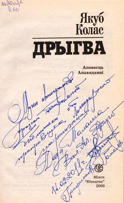 Текст дарственной надписи: