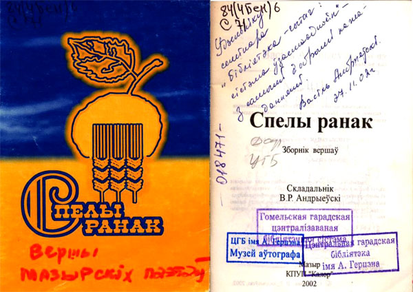 Спелы ранак: Зборнік вершаў / склад. В.Р. Андрыеўскі. –Мазыр: КПУП "Калор", 2002. – 72 с.