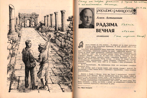 Сашу на добры ўспамін у день 32-годдзя з пажаданнем шчасця. Алесь. 20.4.86