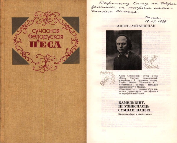 Дарагому Сашу на добры ўспамін, са шчырым пажаданнем шчасця. Саша. 18.02.1986.