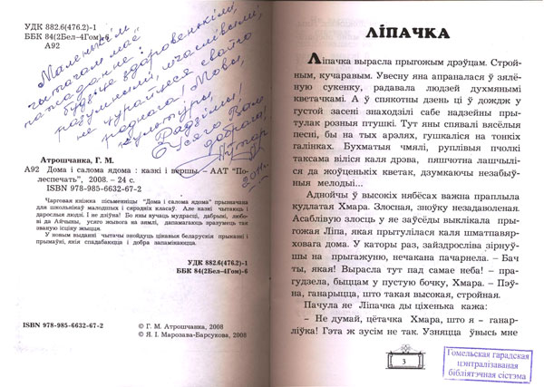 Маленькім чытачам маё пажаданне: будзьце здаровымі, разумнымі, шчаслівымі, не цурайцеся свайго роднага! Мовы, культуры, Радзімы! Усяго Вам добрага! Аўтар. 2011 г.