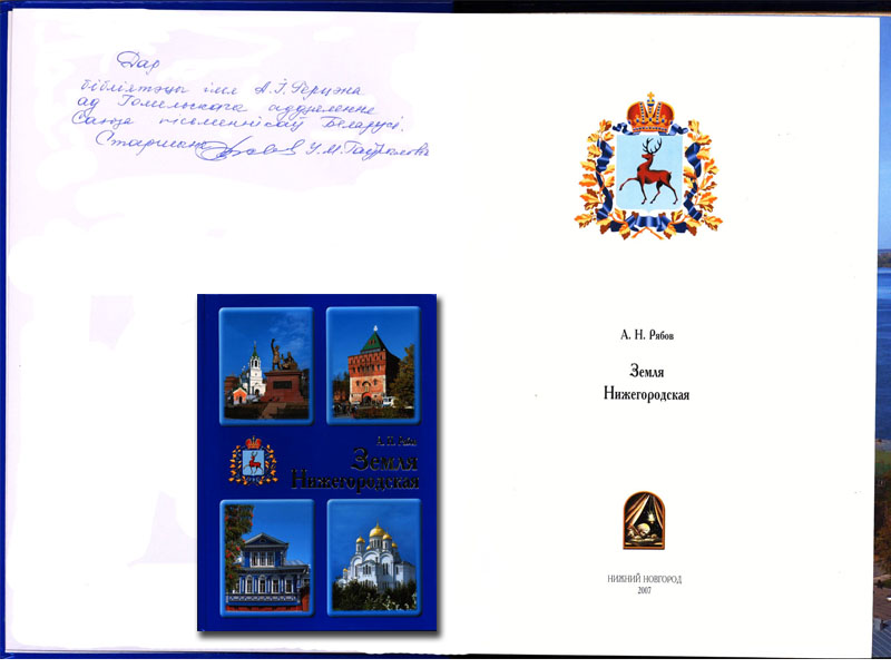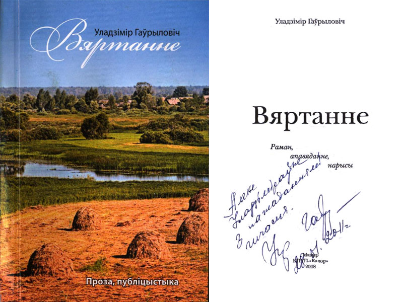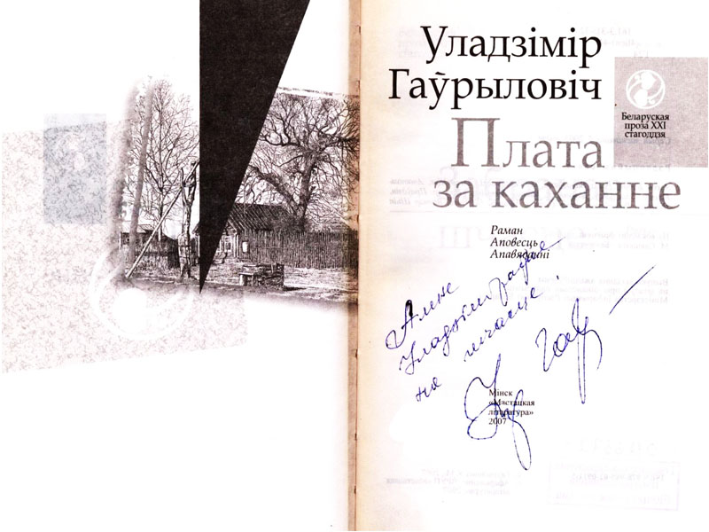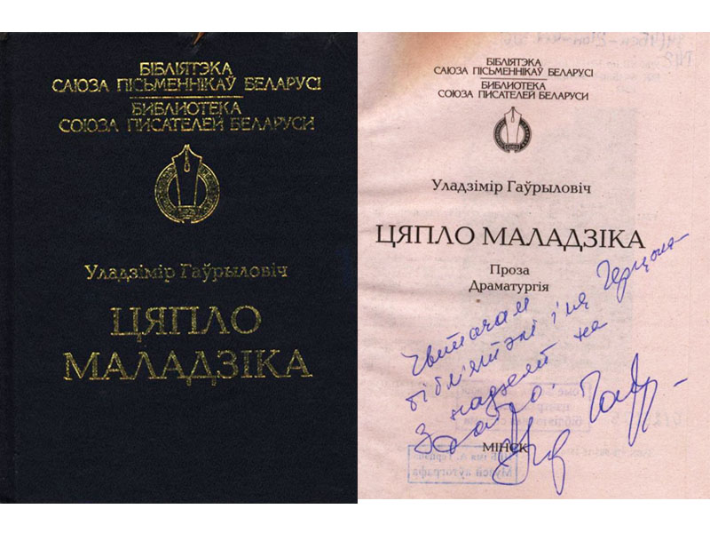 У дар бібліятэцы імя А. І. Герцэна ад У. М. Гаўрыловіча. Шчасця – супрацоўнікам, а чытачам – цікавасці да кнігі. /Подпіс/