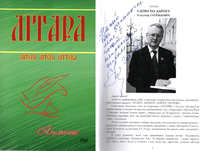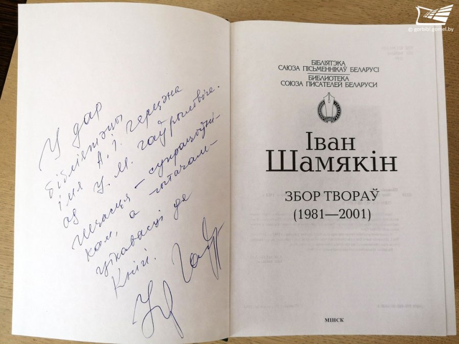 Дар бібліятэцы імя А.І. Герцэна ад Гомельскага аддзялення Саюза пісьменнікаў Беларусі. Старшыня У.М. Гаўрыловіч