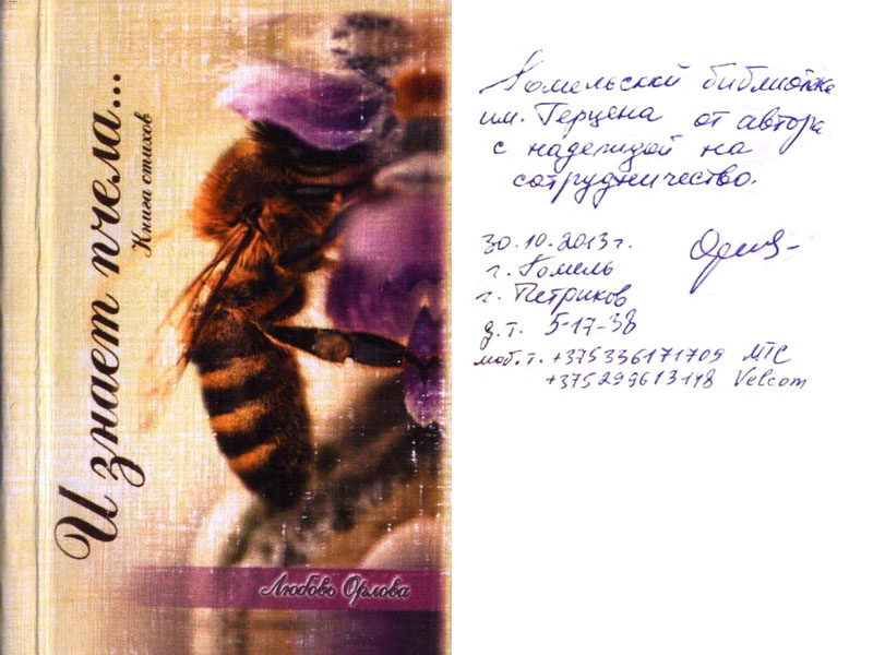 Гомельской библиотеке им. Герцена от автора с надеждой на сотрудничество. 30.10.2013 г. г. Гомель г. Петриков, д.т. 5-17-38, моб. т.+375 336171709 мтс, +375299613148 velcom.