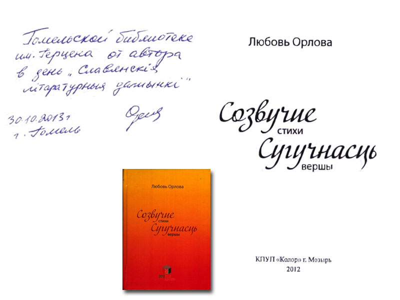 Гомельской библиотеке им. Герцена от автора в день «Славянскія літаратурныя дажынкі» 30.10.2013 г. г. Гомель