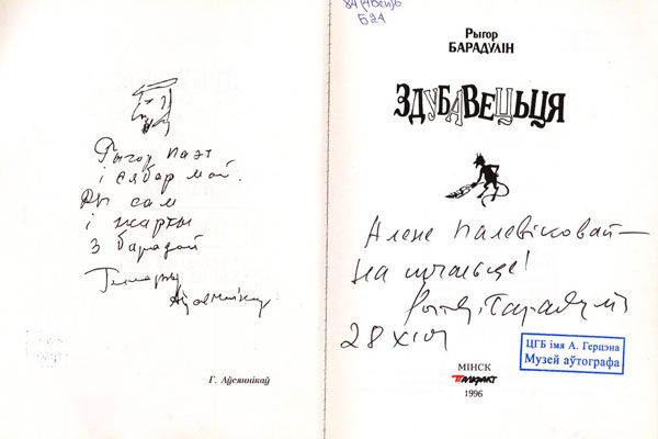 Барадулін, Р. І. Здубавецьця / Рыгор Барадулін; мастак І. Дзямкоўскі. – Мн.: Паліфакт, 1996. – 158 с.